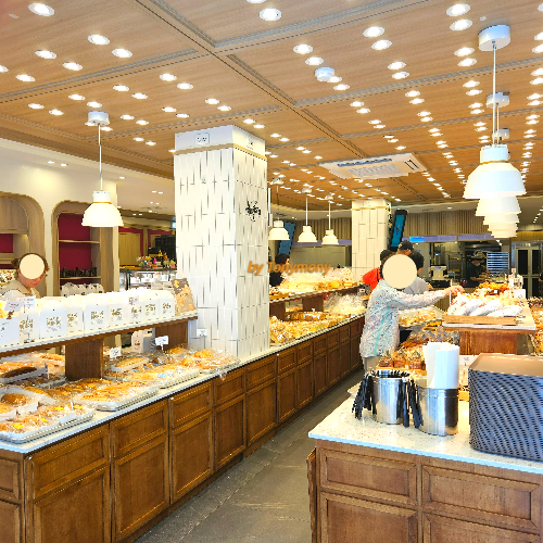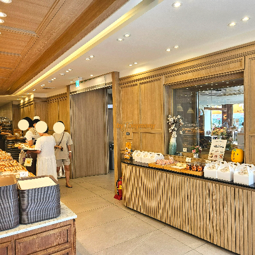 진열대 위에 빵 종류별로 여러 가지 구비되어 있습니다. 유통기간에 상관없이 먹기 좋은 빵과 쿠키들도 여러가지 있습니다. 옆으로는 카페 공간이 마련되어 있어 음료와 함께 빵을 드실 수 있습니다.